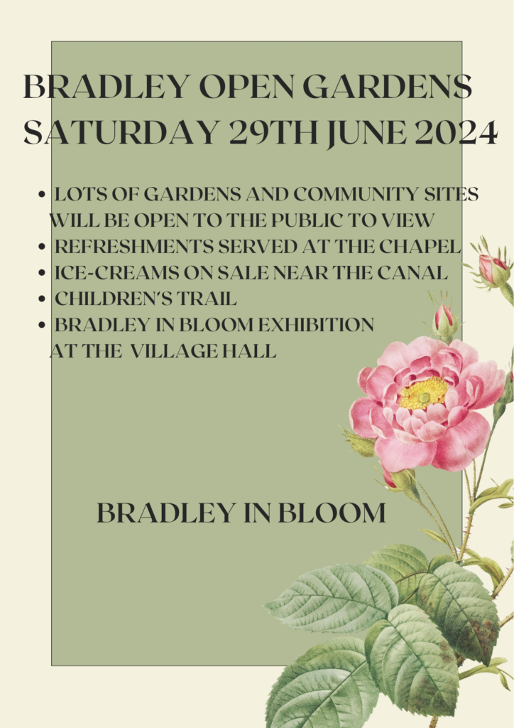 The greening of Bradley project continues with further flowering cherry trees planted. Thanks to cllr Andy Brown, and the generosity of Twin Locks Nursery we have continued to plant this year. As last year was very dry it’s thanks to John and Fran Lofthouse that last year’s planting survived. The photo below shows the first planting in full blossom. It is intended to plant more in the future.