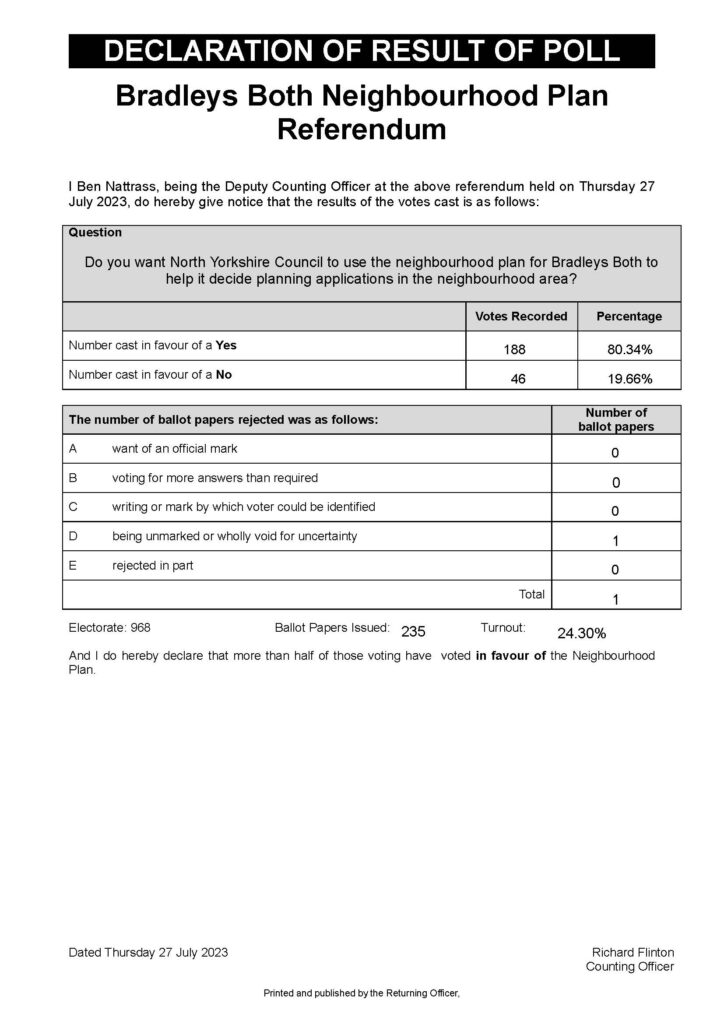 The Regulation 16 consultation has now been completed. Representations received by Craven District Council are here: https://www.cravendc.gov.uk/planning/spatial-planning/neighbourhood-plans/bradley/